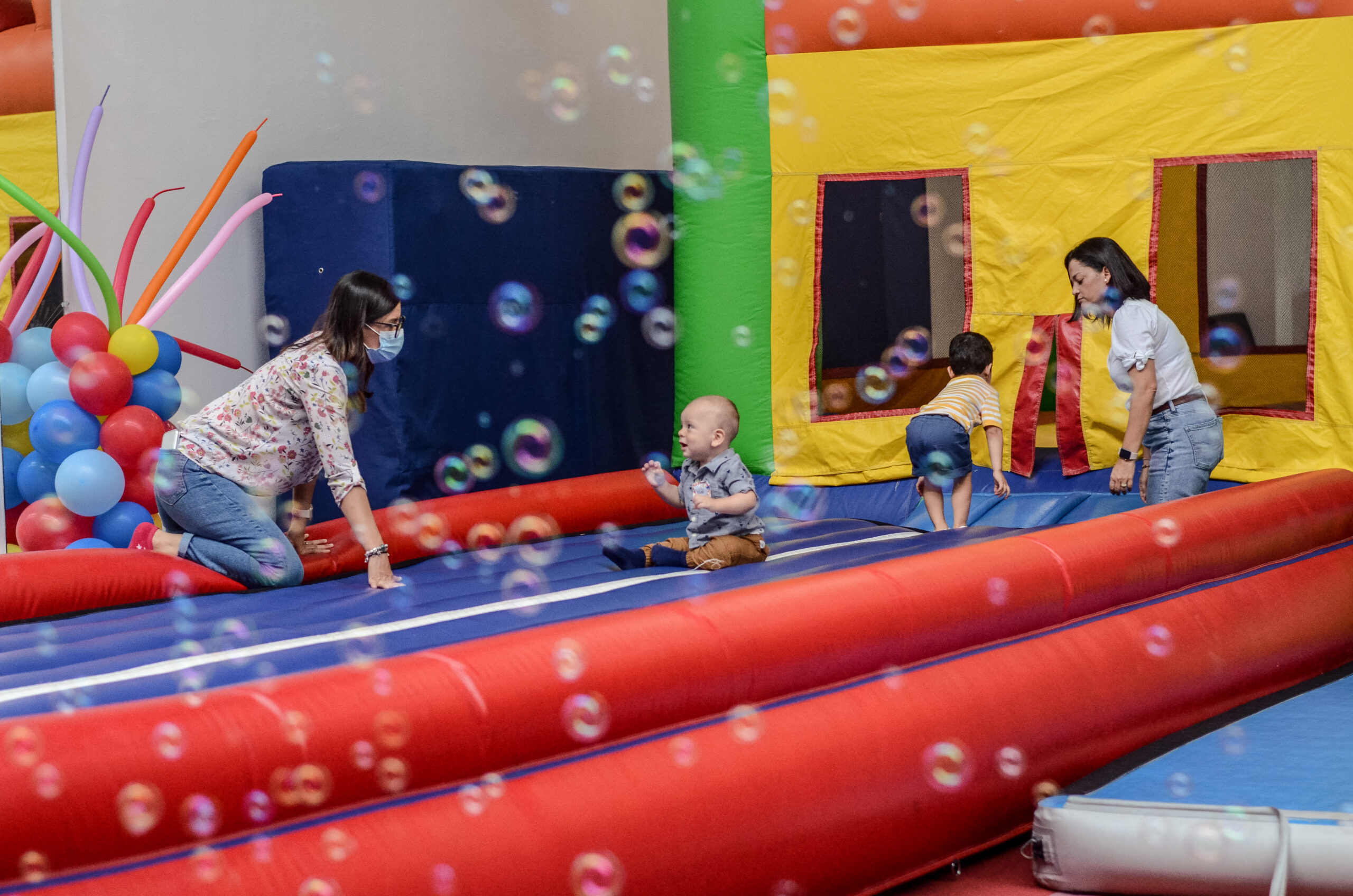 Utilizan el equipo de gimnasia, piscina de espumas y trampolines, en un ambiente seguro y supervisado. Además, tendrán un espacio para compartir comida, piñata y queque con sus amigos y familiares.